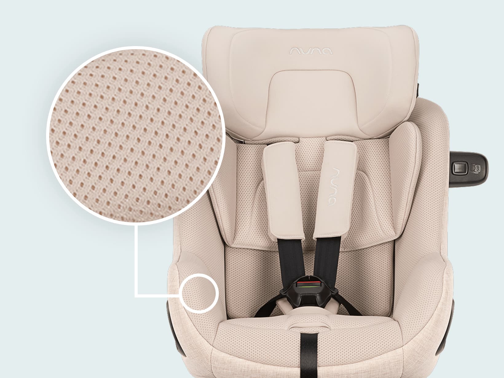 Tkanina z przewiewnej, odprowadzającej wilgoć siateczki została zaprojektowana tak, aby minimalizować przegrzewanie dziecka w samochodzie.